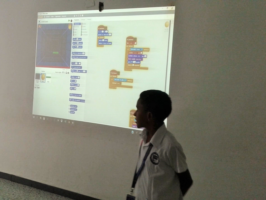 El trabajo ha sido desarrollado y expuesto en la Feria de la ciencia y la tecnología por el estudiante Markos Andres Garcia del grado 6, desarrollando un video juego sencillo de introducción para motivación de la comunidad y quien ha disfrutado del reconocimiento de su labor por parte de los demás.